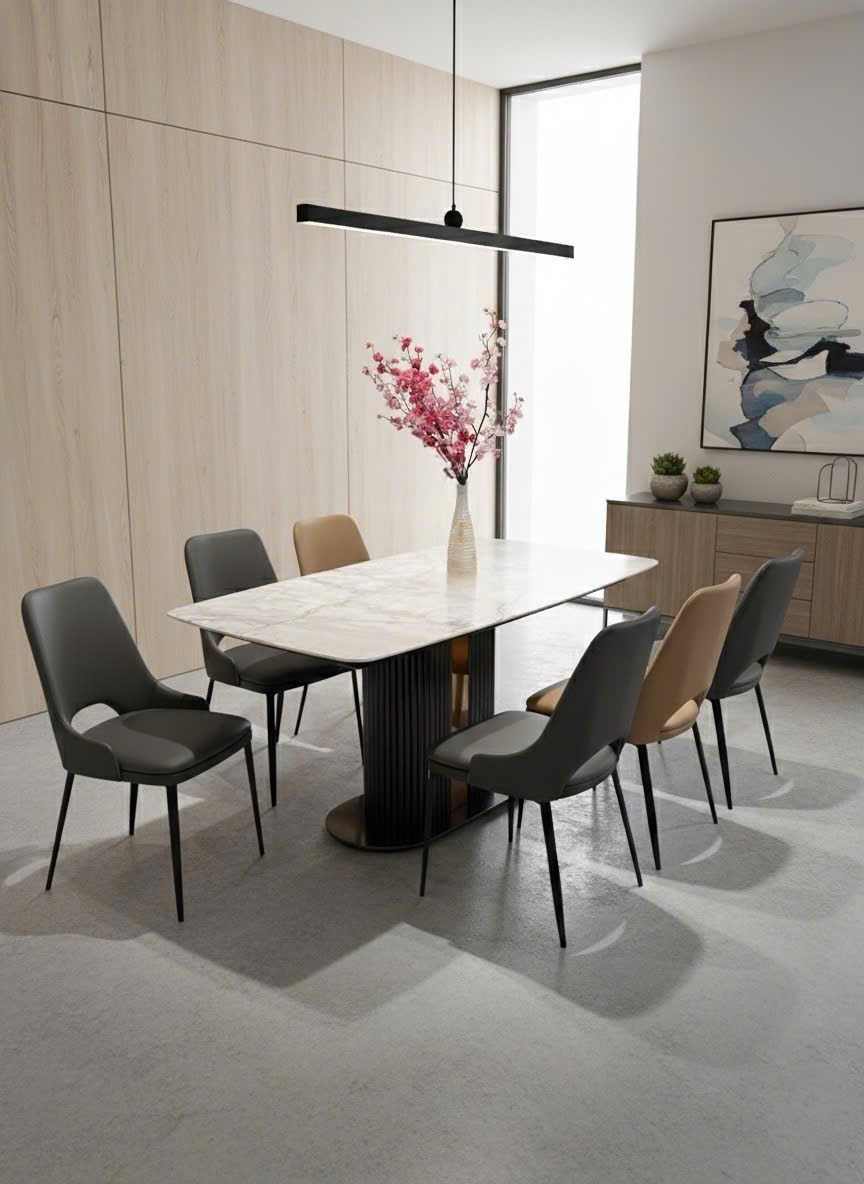 Bàn ăn đá tại Toàn Phú thường đi kèm các mẫu ghế ăn hiện đại bọc da hoặc nỉ cao cấp, êm ái và hỗ trợ lưng tốt, tạo nên bộ bàn ăn hoàn chỉnh, hài hòa cả về màu sắc lẫn phong cách.