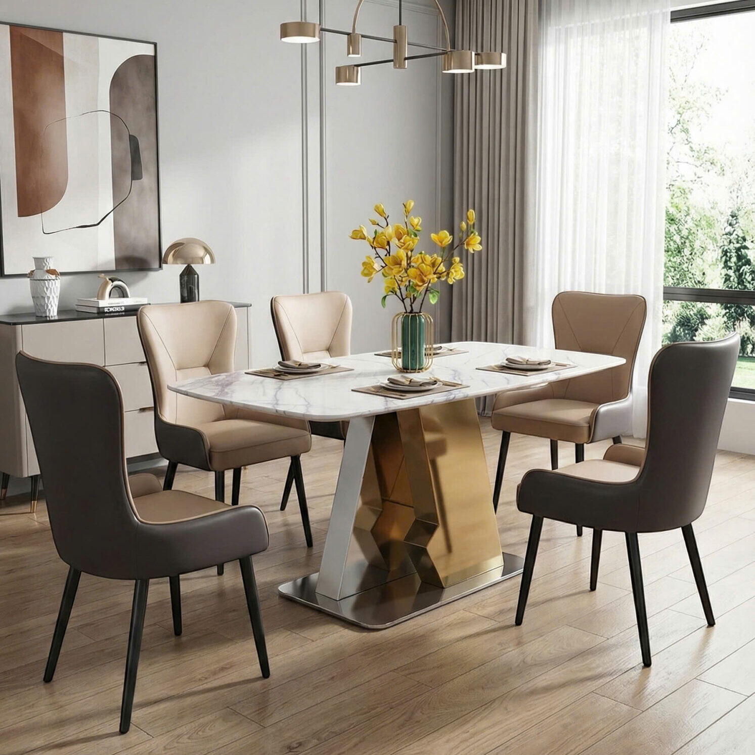 Gợi ý: Kết hợp mẫu bàn này với ghế ăn bọc da chân sắt để tạo nên một bộ bàn ăn “tone-sur-tone” hoàn hảo nhất.