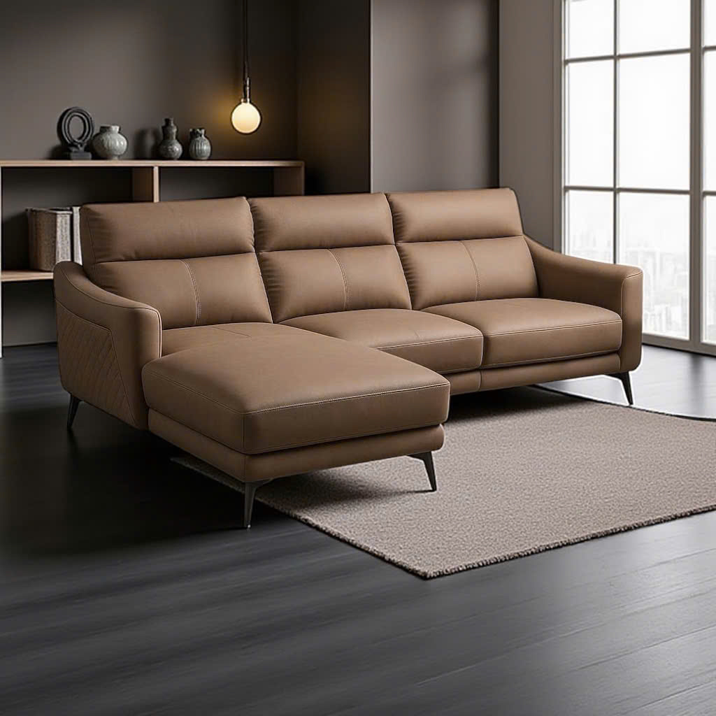 Sofa góc chữ L 907L là lựa chọn lý tưởng cho những ai đang tìm kiếm một mẫu sofa vừa sang trọng vừa tiết kiệm diện tích. Sản phẩm được bọc da bò thật 100%, khung gỗ tự nhiên, đệm ngồi dày dặn êm ái – tạo nên không gian phòng khách đẳng cấp mà không cần quá nhiều chi tiết cầu kỳ.