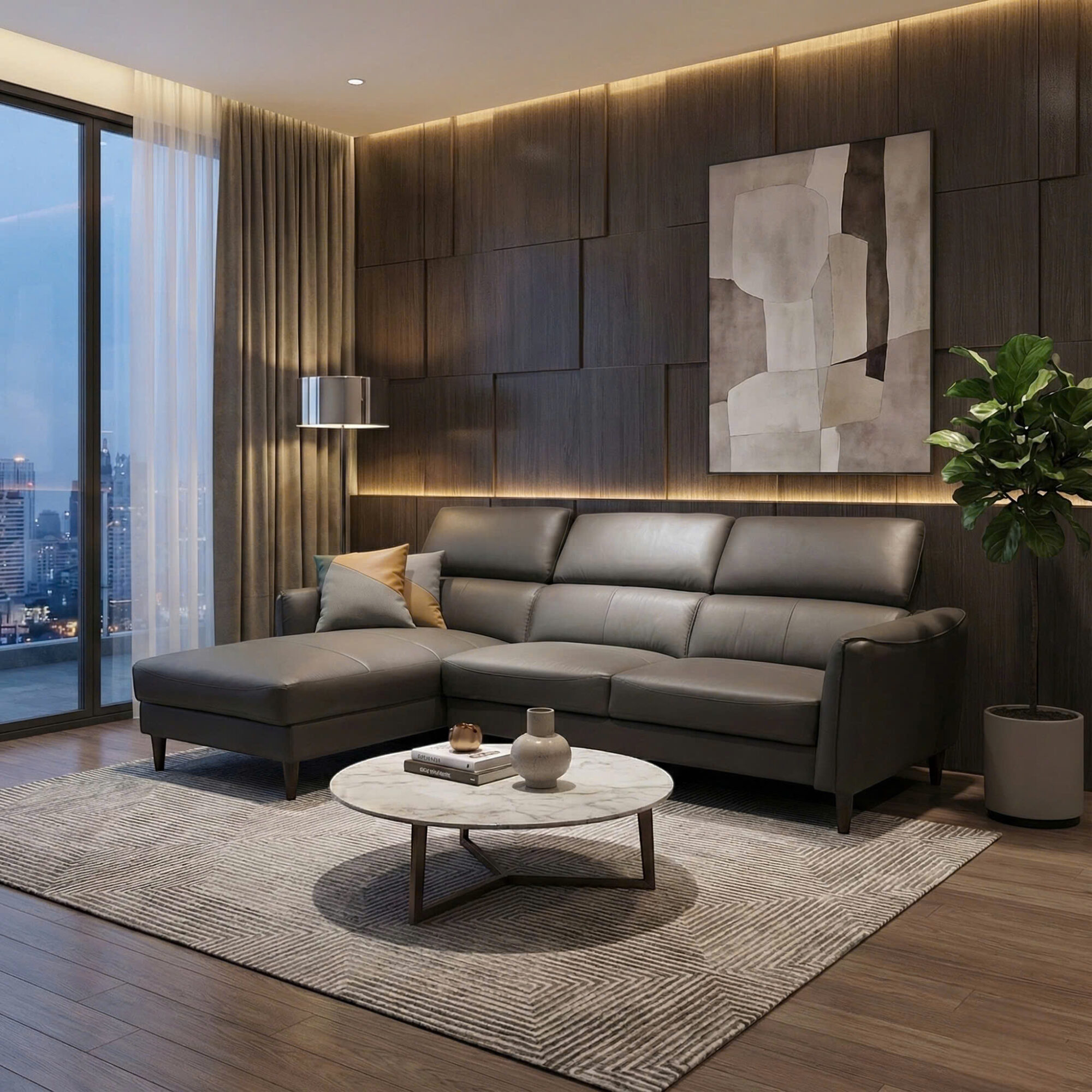 Thiết kế: Sofa góc chữ L, tựa đầu điều chỉnh